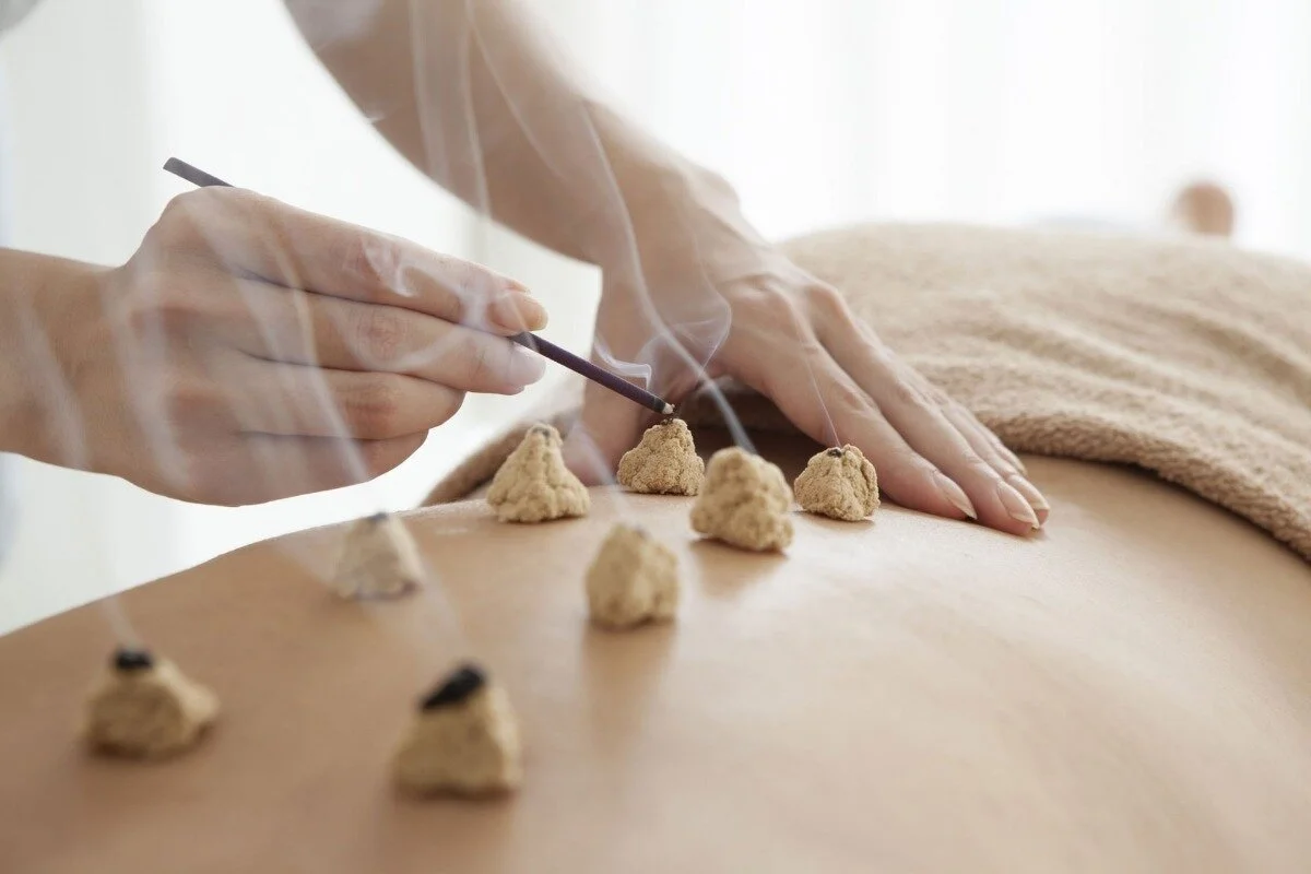 Moxibustion therapy involves the smoldering of particular herbs, most commonly, Mugwort (Artemis vulgaris). This thermal therapy is effective for many applications: joint pain caused by cold or damp weather, menstrual cramping, digestive deficiencies, nausea and other imbalances caused by cold and damp stagnations in the body.